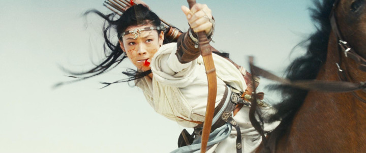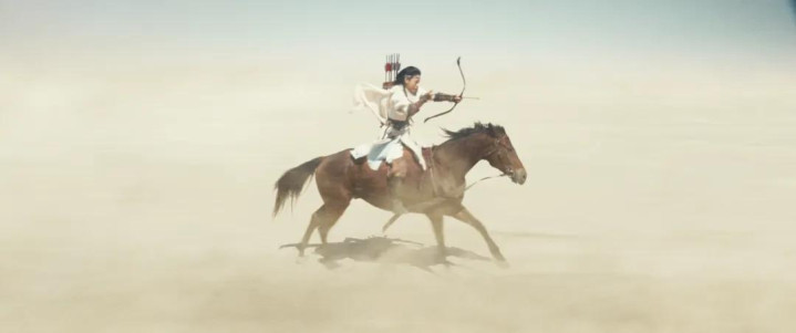 她上演阿育娅,预报里有一个她倒下片刻抽箭搭弓,箭矢破空而出的场景。