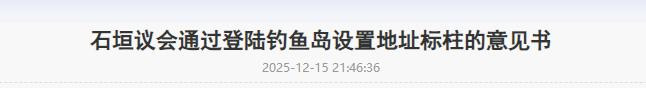 共同社12月15日的报说念说得晴明晰楚:石垣市议会尽然通过央求,要组织东说念主手强行登岛设行政象征。