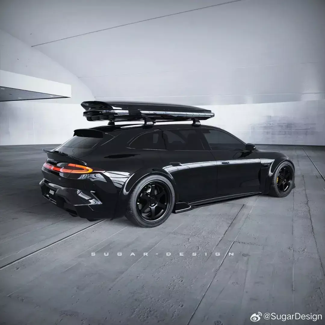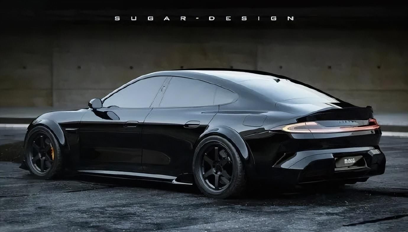 然后再来望望由国内渲染大神Sugar Design筹画打算的宽体SU7。若是你认为我方小米SU7不面子,那一定是黑的不够到位,姿态还莫得放宽。主要的篡改“未几”,也就几个轮眉和尾翼,小动静黑收场之后就帅多了,你们认为呢?
