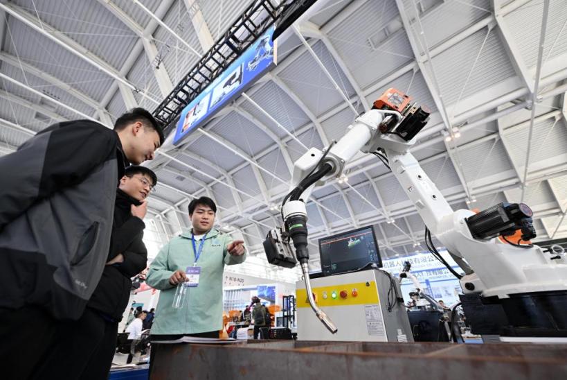 3月6日,第21届中国(天津)海外装备制造业展览会在国度会展中心(天津)开幕,图为不雅众在天津工博会上参不雅一款工业机器东谈主。新华社记者 赵子硕 摄