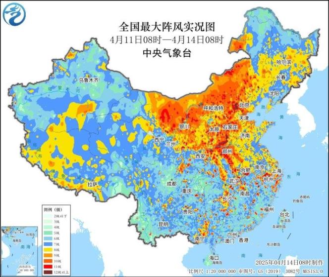 征象监测流露,在本轮大风天气中,阵风风力8级以上影响国土面积源泉350万平时公里;内蒙古、华北、黄淮部分地区阵风11~13级,局地14~15级;大风最强时段出咫尺12日和13日。内蒙古、河北、河南、安徽、湖北等地共有327个国度级征象不雅测站最大阵风打破4月历史极值,其中陕西、山西、河北、河南等地64个国度级征象不雅测站打破历史极值。