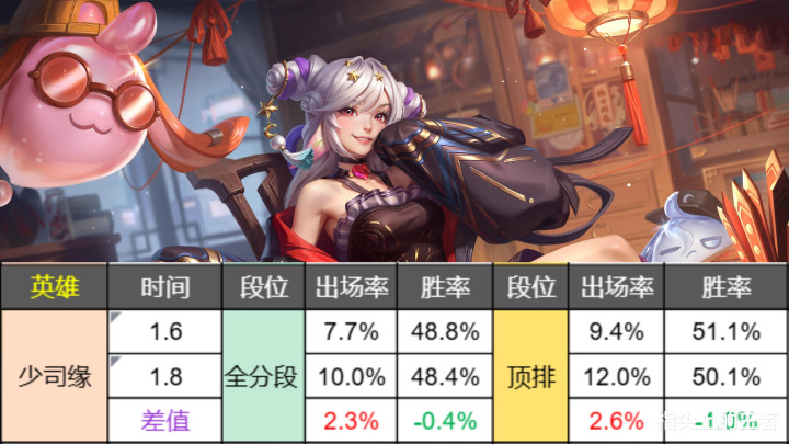满级后没影响,前期减少了5点偷金币数值,没猜想明明是平缓,出场率却涨了这样多,而胜率方面顶排降了1%。