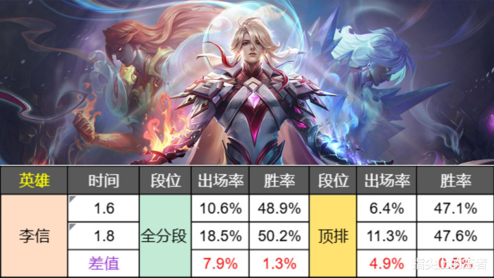 但非论怎样说,李信这波出场率胜率均有涨幅,能够你会以为这点胜率涨幅微不足道,但这但是胜率暴涨之后的胜率涨幅,因此暂时来看,李信的颐养似乎是告捷的,最起码从数据方面是这样的。