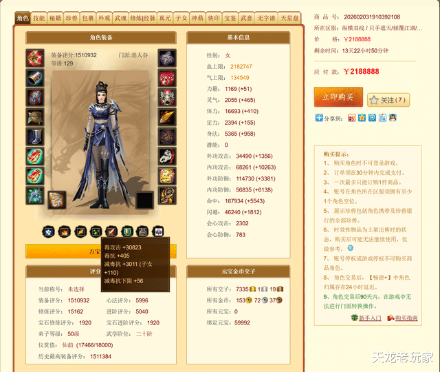 218万元的价钱照实贵了点云开体育,比较于同评分老门派而言,价钱是2-4倍!关联词恶东谈主谷毕竟是新门派,号主一手打造,并且是全服仅有的3个三进阶恶东谈主谷之一!
