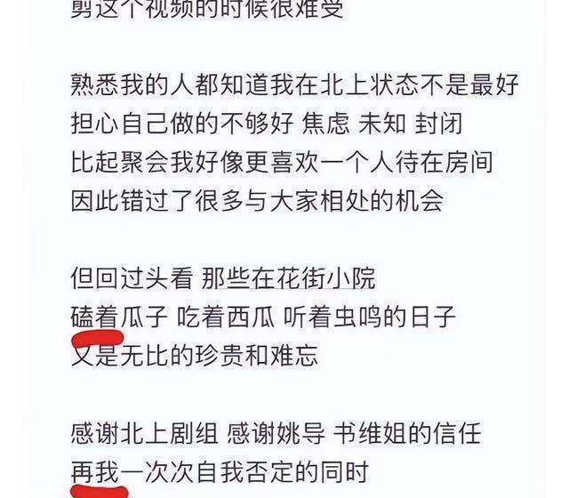 白鹿,这位在文娱圈小著明气的艺东谈主,最近却因其在代表作《北上》完播后的发文闹得沸沸扬扬。这看似等闲的200多字的告别案牍,却成为了她“东谈主设坍弛”的导火索。错字百出的情况实在是不应该发生在一位闻明艺东谈主身上。像把“嗑瓜子”写成“磕瓜字”,“在我”写成“再我”,“涌向”写成“泳向”,这些舛讹就如同小学生常犯的舛讹一般,可她却堂金冠冕地出当今艺东谈主的公开荒文中。这让我不禁猜测,在文娱圈包装的光环下,是否简直有艺东谈主只是在“徒有其表”?