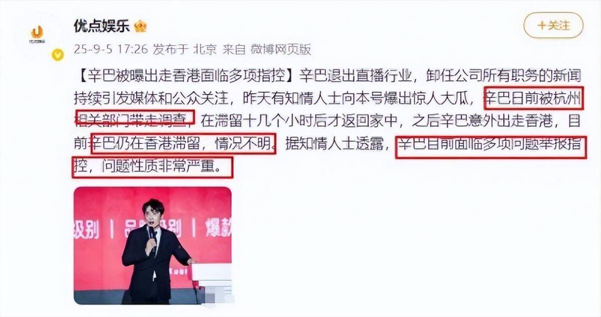 9月5日,一则新闻冲上热搜:直播带货圈的辛巴被爆淹留香港。
