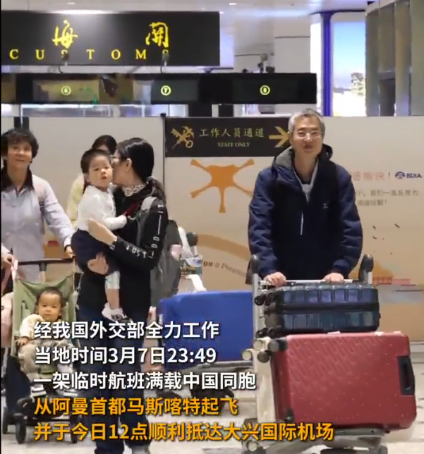 淹留中东本家抵京后兴隆落泪 当地时代3月7日23时49分,一架临时航班满载中国本家从阿曼齐门马斯喀特升起,并于8日12时凯旋抵达大兴海外机场。别称游客在经受采访时说,“只好回到国内才是最巩固的,莫得任何一个场所比中国更安全。”