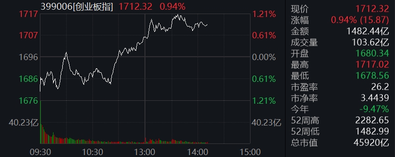 创业板指涨0.94% 中船系走强创业板指涨0.94% 中船系走强